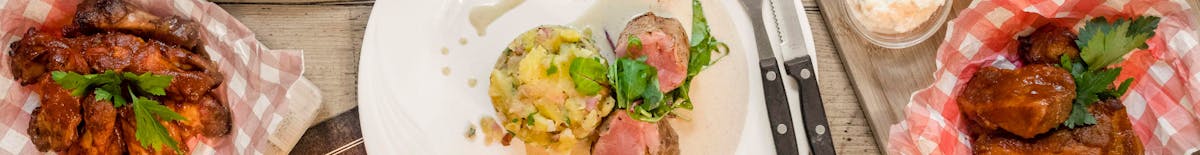 Steak z hovězí roštěné s grilovanou zeleninou, bylinkovým máslem, pečené brambory