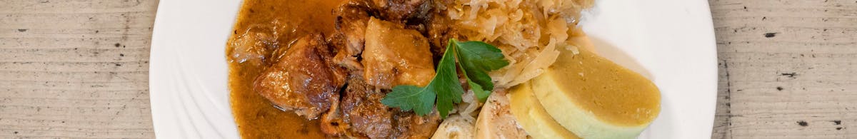 Hovězí guláš, houskový knedlík, cibulka (1,3,7)
